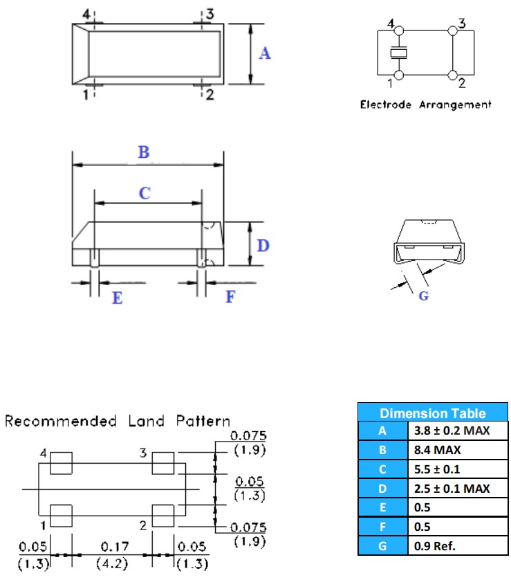 8038mm,ELS25-32.768kHz-T,AEL品牌,陶瓷諧振器,ELS25,智能家居晶振,尺寸圖