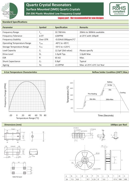 AEL晶振,ZM-206晶振,SMD晶振,32.768K時(shí)鐘晶體具有小型,薄型,輕型的貼片晶振表面音叉型晶體振蕩器,產(chǎn)品具有優(yōu)良的耐熱性,耐環(huán)境特性,可發(fā)揮晶振優(yōu)良的電氣特性,符合RoHS規(guī)定,滿足無鉛焊接的高溫回流溫度曲線要求,金屬外殼的封裝使得產(chǎn)品在封裝時(shí)能發(fā)揮比陶瓷振蕩器外殼更好的耐沖擊性.