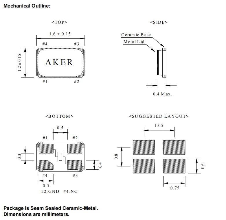 C16-40.000-10-3030-X-R,智能穿戴設備晶振,AKER超小型晶體,尺寸圖