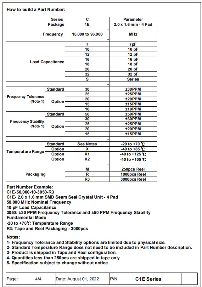 C1E-30.000-10-1530-X-R | Aker安碁晶振 | 石英晶體 | Crystal 30MHz ±15ppm (Tol) ±30ppm (Stability) 10pF FUND 80Ohm 4-Pin SMD T/R |