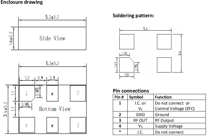 Enclosure (see drawing) (LxWxH) | 5.2x3.4x1.85 | mm | See drawing | |||||||||||||||||||||||