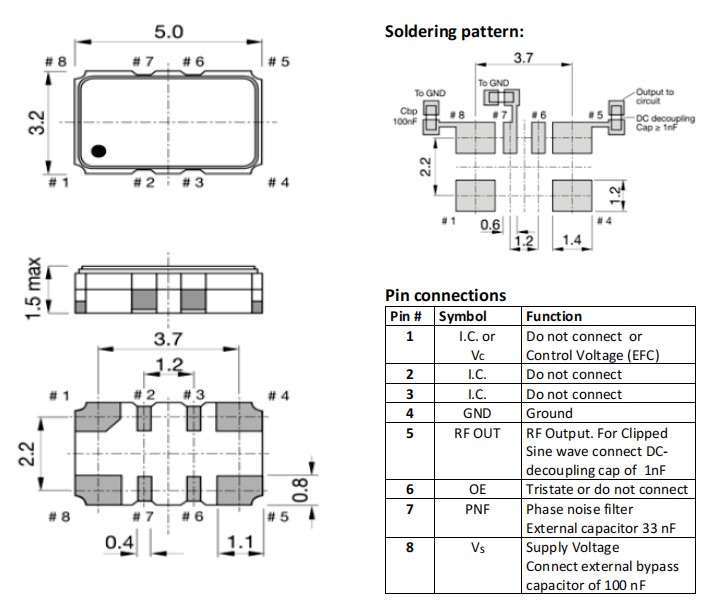 AXLE5032LN-V-33-C-05-4F-16.000,5032mm,16MHz,AXTAL品牌,AXLE5032LN,低噪聲晶振,尺寸圖