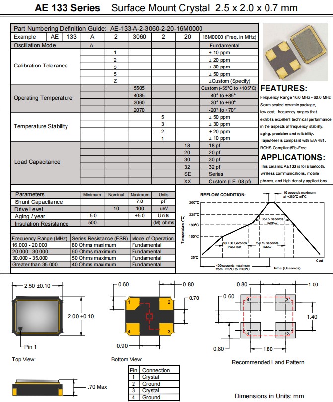 6G無線通信晶振,AE-133-A-2-3060-2-20-16M0000,Anderson超小型晶振,AE133石英晶振,無鉛環(huán)保晶振,參數(shù)表