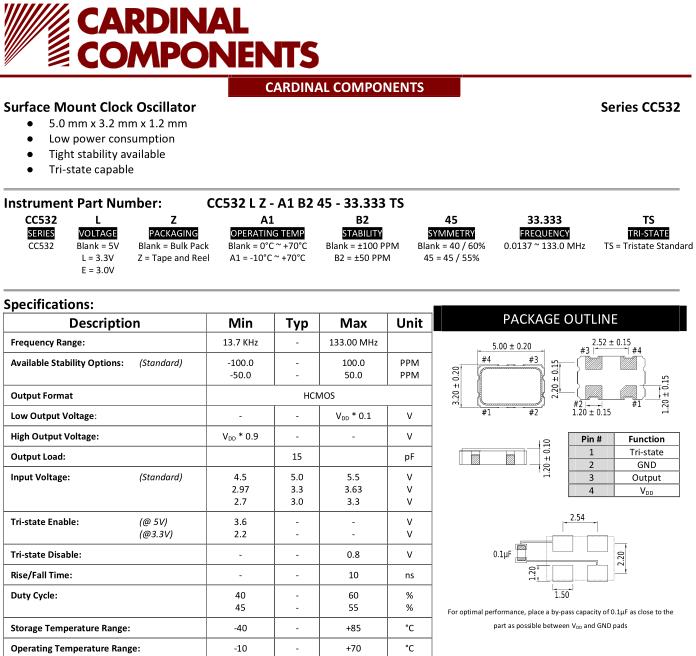 Available Stability Options: (Standard) | -100 | - | 100.0 | PPM |