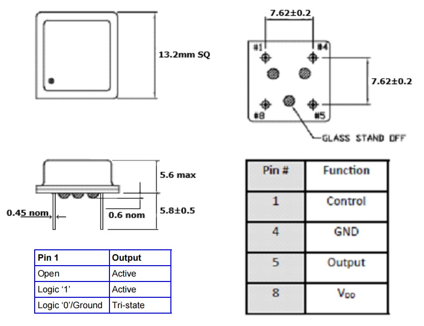 - | 0.4 | - | Standby option: Pad 1 low, output disabled, oscillator shutdown | ||||