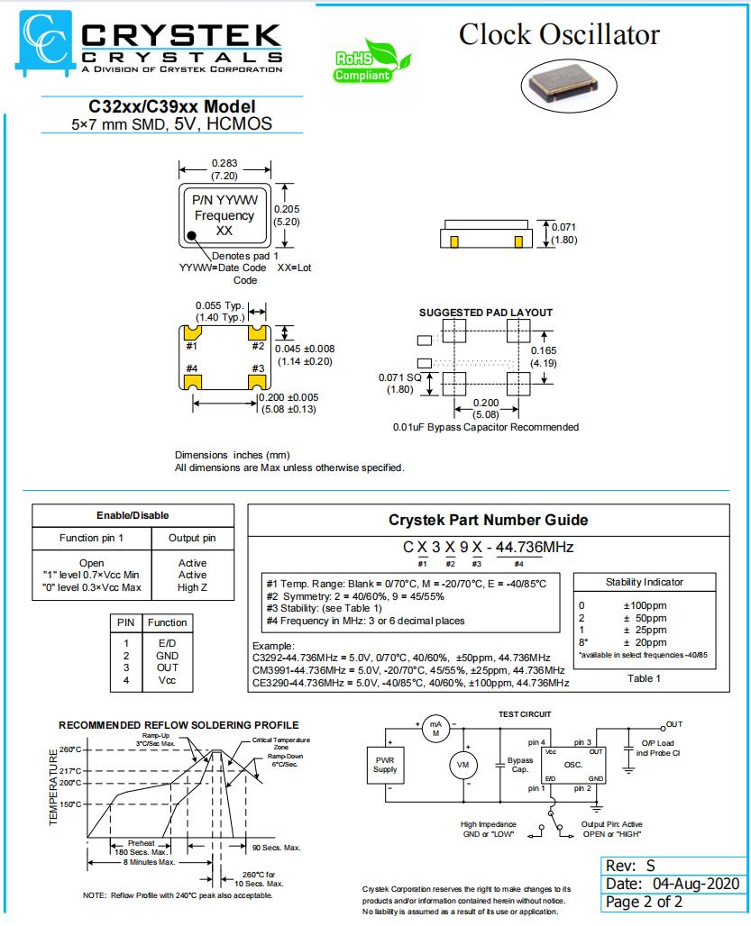 C3290-50.000 | Crystek晶振 | C3290 | 50MHz | ±100ppm |
