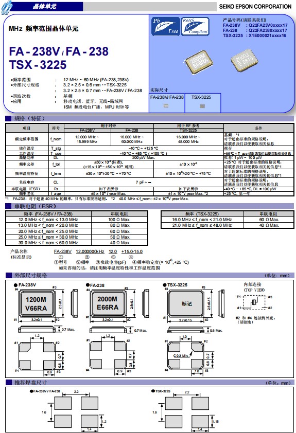 MPU時鐘專用晶振FA-238,Q22FA23800001,3225mm,12pF,20MHz,±50ppm,參數(shù)圖
