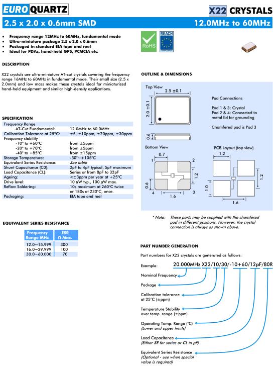 AT-Cut Fundamental: | 12.0MHz to 60.0MHz | |