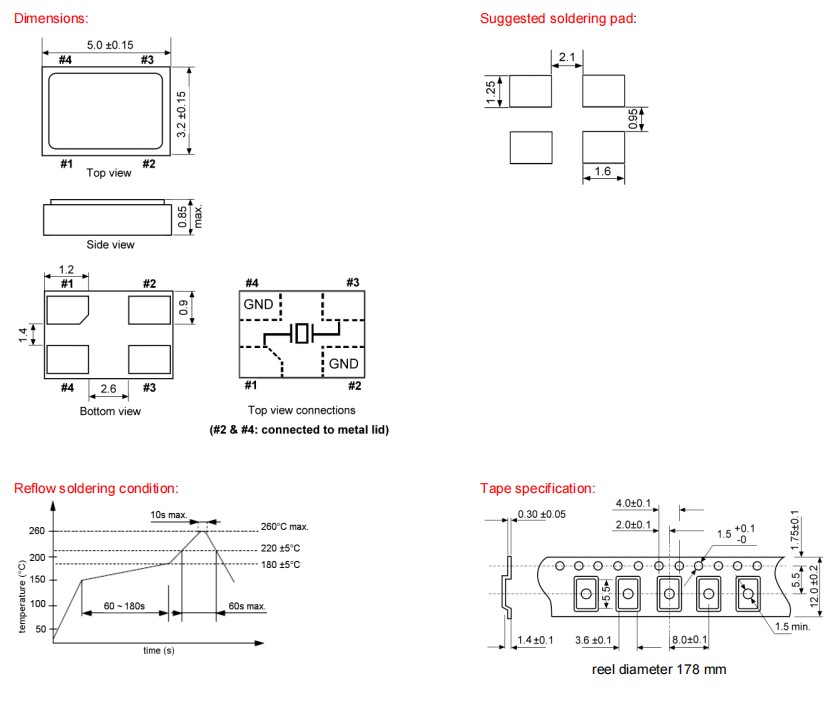 standard ±50 ppm; available ±10~±100 ppm standard ±120 ppm; available ±30~±120 ppm |