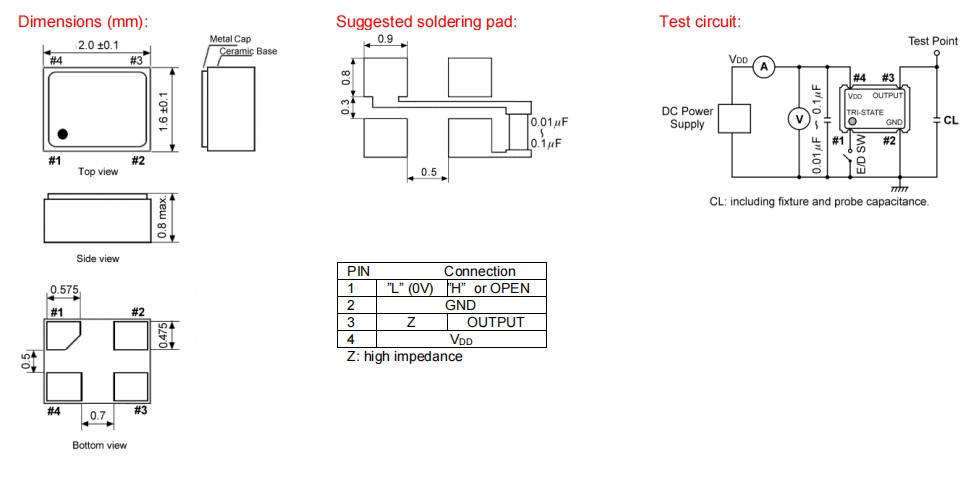 stand by current max. | 50 μA (Pin #1=VIL) | |||||||||