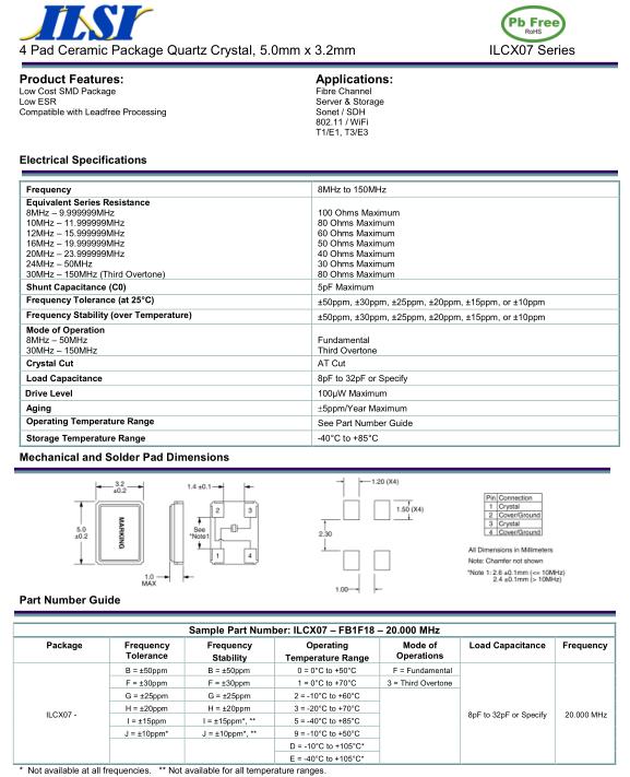 ILSI晶振,ILCX07晶振,ILCX07-FB1F18-20.000MHz晶振,智能手機(jī)晶振,產(chǎn)品具有高精度超小型的表面貼片型石英晶體振蕩器,最適用于移動通信終端的基準(zhǔn)時鐘等移動通信領(lǐng)域.比如智能手機(jī),無線通信,衛(wèi)星導(dǎo)航,平臺基站等較高端的數(shù)碼產(chǎn)品,晶振本身小型,薄型具備各類移動通信的基準(zhǔn)時鐘源用頻率,貼片晶振具有優(yōu)良的電氣特性,耐環(huán)境性能適用于移動通信領(lǐng)域,滿足無鉛焊接的高溫回流溫度曲線要求..