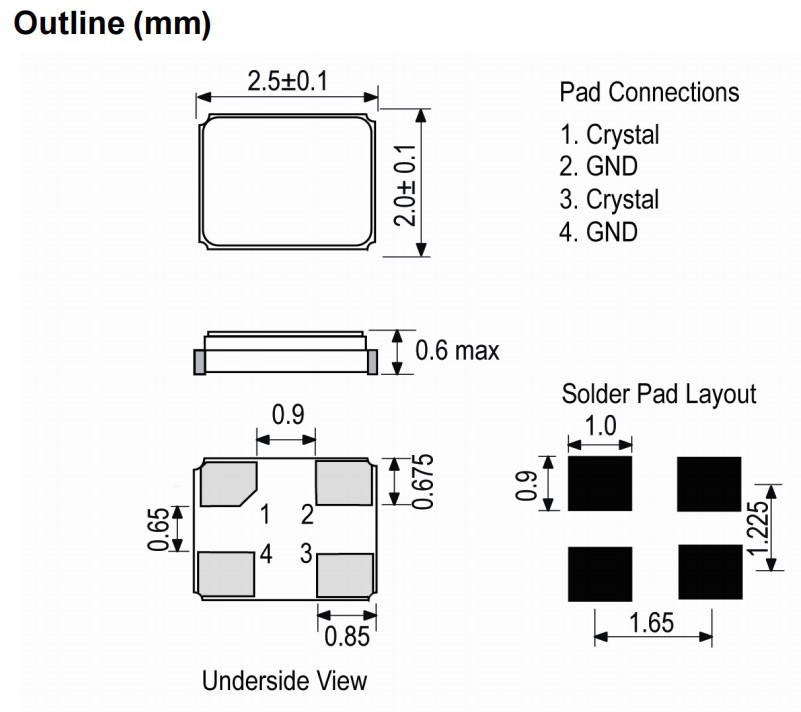 IQD無源晶振CFPX-218,LFXTAL069404REEL,醫療設備6G晶振,LFXTAL078207REEL,石英晶體諧振器,尺寸圖