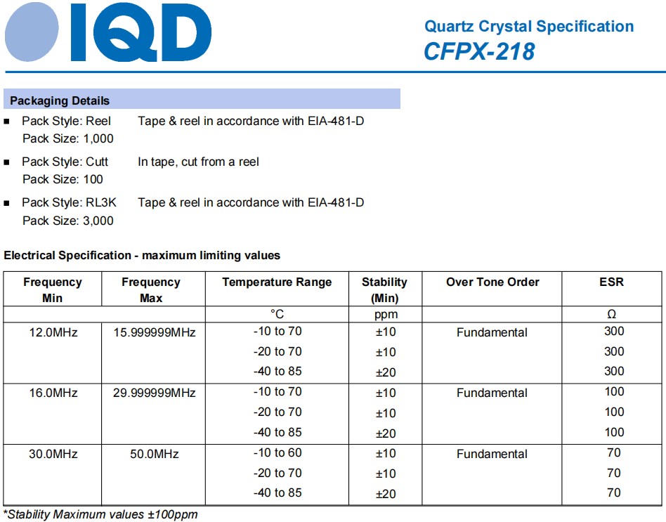 IQD無源晶振CFPX-218,LFXTAL069404REEL,醫療設備6G晶振,LFXTAL078207REEL,石英晶體諧振器,參數表