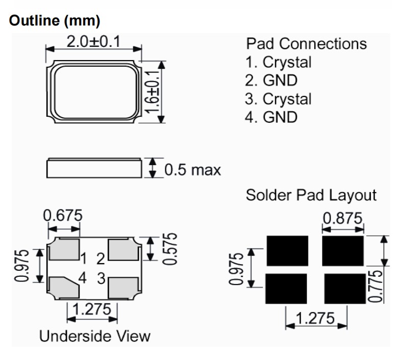 汽車電子6G晶振,IQXC-42,LFXTAL073170REEL,IQD超小型晶振,LFXTAL078377REEL,可穿戴設(shè)備晶振,尺寸圖