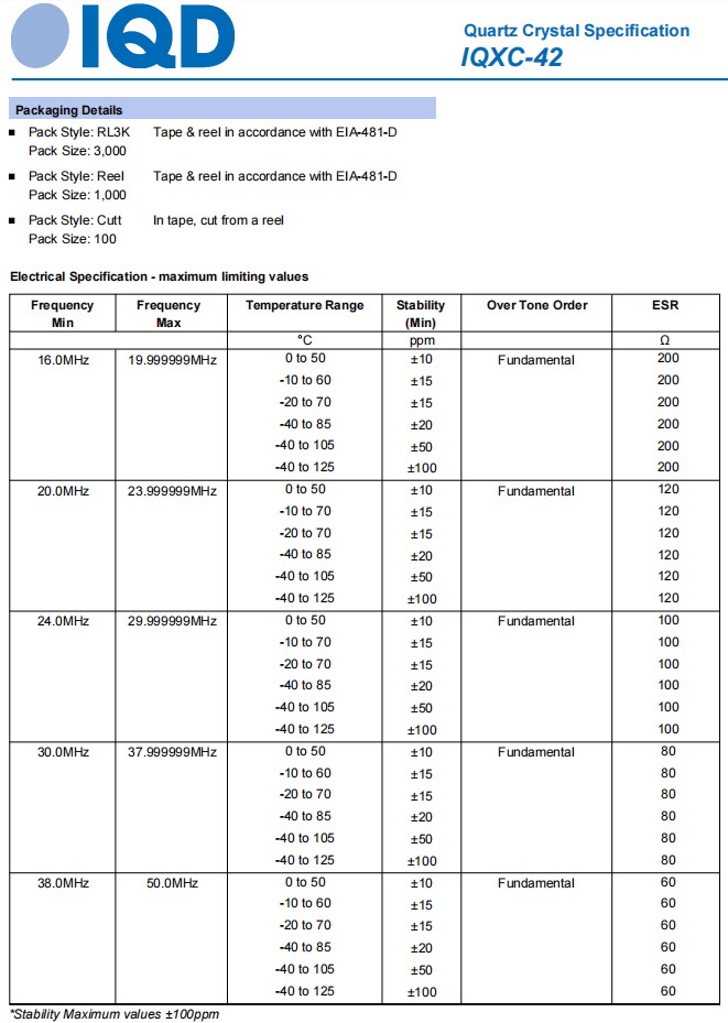 LFXTAL082887RL3K | IQD晶振 | IQXC-42 | CRYSTAL 10.0000MHZ 12PF SMD | 16 MHz |