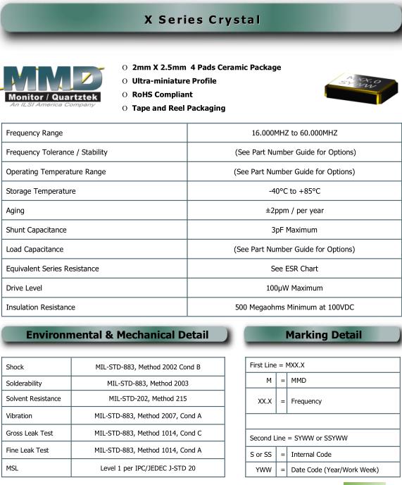 MMDCOMP晶振,XSCB1-26.000M-T晶振,2520mm晶振,小型貼片石英晶振,外觀尺寸具有薄型表面貼片型石英晶體振蕩器,特別適用于有小型化要求的市場領域,比如智能手機,無線藍牙,平板電腦等電子數(shù)碼產(chǎn)品.晶振本身超小型,薄型,重量輕,晶體具有優(yōu)良的耐環(huán)境特性,如耐熱性,耐沖擊性,在辦公自動化,家電相關電器領域及Bluetooth,WirelessLAN等短距離無線通信領域可發(fā)揮優(yōu)良的電氣特性,滿足無鉛焊接的回流溫度曲線要求.