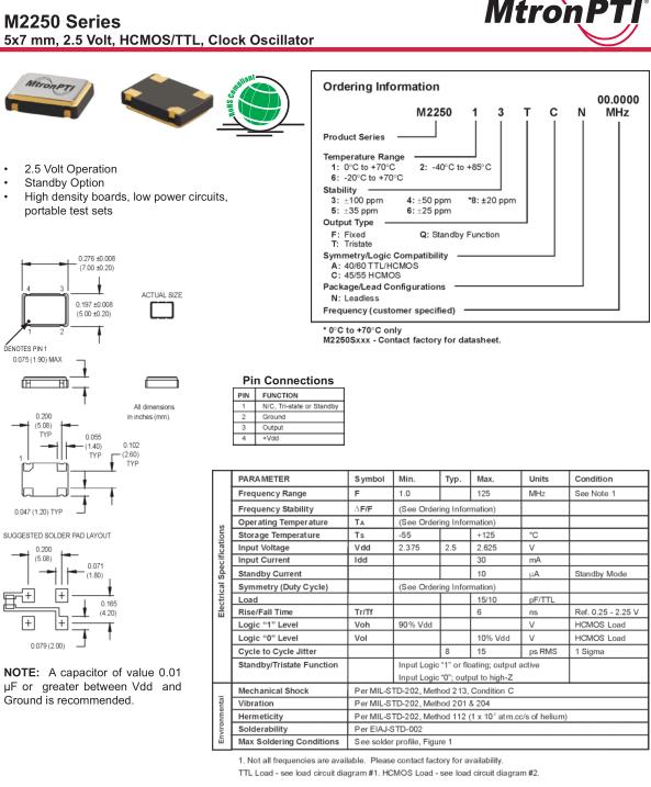 MtronPTI晶振,M2250晶振,M225013TCN20.0000MHz晶振,小型SMD有源晶振,從最初超大體積到現(xiàn)在的7050mm,6035mm,5032mm,3225mm,2520mm體積,有著翻天覆地的改變,體積的變小也使產(chǎn)品帶來了更高的穩(wěn)定性能,接縫密封石英晶體振蕩器,精度高,覆蓋頻率范圍寬的特點,SMD高速自動安裝和高溫回流焊設(shè)計,Optionable待機輸出三態(tài)輸出功能,電源電壓范圍:1.8V~5V,高穩(wěn)定性,低抖動,低功耗,主要應(yīng)用領(lǐng)域:無線通訊,高端智能手機,平板筆記本W(wǎng)LAN,藍(lán)牙,數(shù)碼相機,DSL和其他IT產(chǎn)品的晶振應(yīng)用,三態(tài)功能,PC和LCDM等高端數(shù)碼領(lǐng)域,符合RoHS/無鉛.