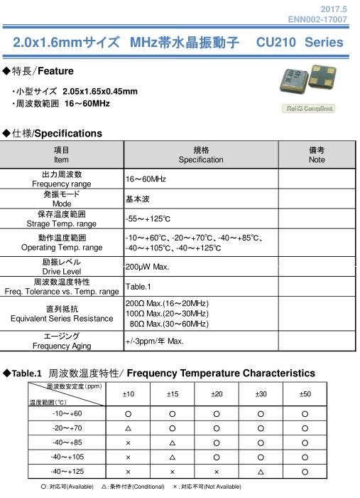 周波數溫度特性 Freq. Tolerance vs. Temp. range |