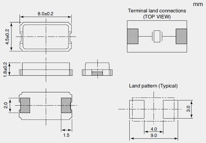 標準頻率 (L×W×H : mm) | 8.0×4.5×1.8 | 8.0×4.5×1.8 | |