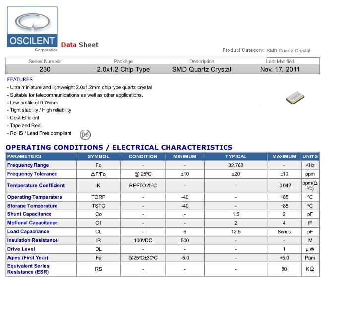 Oscilent晶振,230-32.768K-SR-20-W-TR晶振,2012mm晶振,貼片晶振本身體積小,超薄型石英晶體振蕩器,特別適用于有目前高速發(fā)展的高端電子數(shù)碼產品,因為晶振本身小型化需求的市場領域,小型,薄型是對應陶瓷振蕩器(偏差大)和普通的石英晶體振蕩器(偏差小)的中間領域的一種性價比較出色的產品.產品廣泛用于筆記本電腦,無線電話,衛(wèi)星導航SSD,USB,Blu-ray等用途,符合無鉛焊接的高溫回流焊曲線特性.