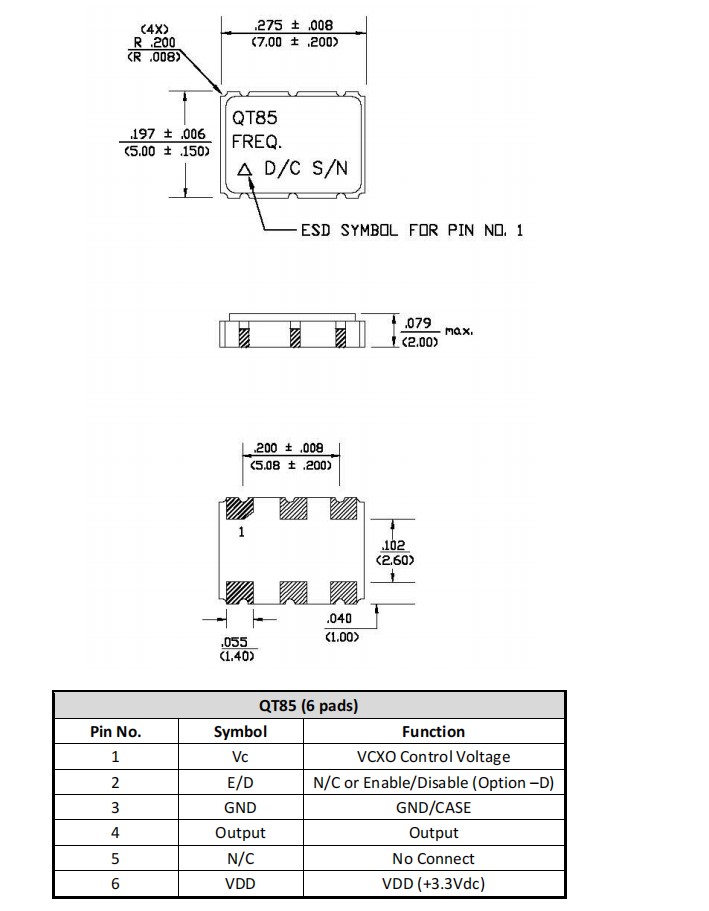QT85VFP7M-125.000MHz,7050mm,Q-Tech晶振,VCXO晶振,QT85VFP,差分晶振,參數表