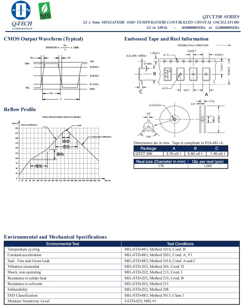 QTCT3503C1B-45.000000,5032mm,45MHz,Q-Tech低抖動晶振,QTCT350,導航應用晶振,參數表