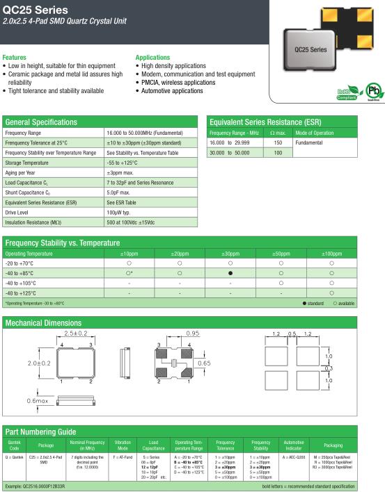 General Specifications-QANTEK晶振 | QC25晶振 |