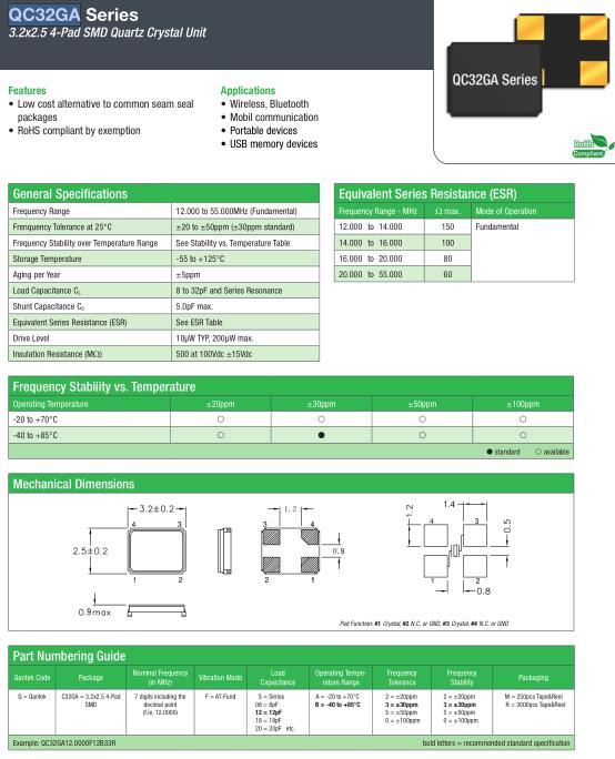 General Specifications-QANTEK晶振 | QC32GA晶振 |