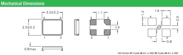 Frenquency Tolerance at 25°C | ±20 to ±50ppm (±30ppm standard) |