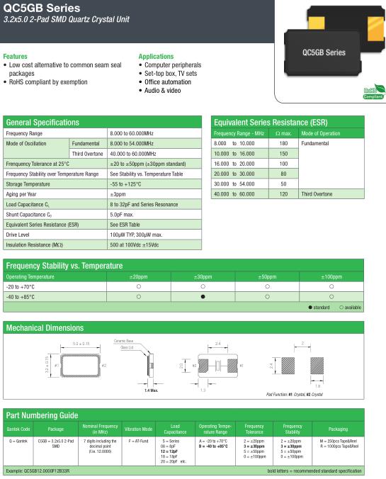 General Specifications-QANTEK晶振 | QC5GB 晶振 | |