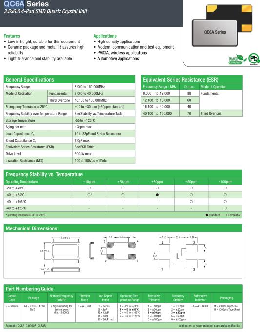 General Specifications-QANTEK晶振 | QC6A晶振 | |