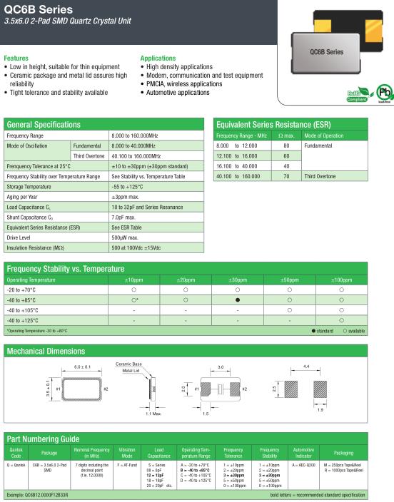 General Specifications-QANTEK晶振 | QC6B晶振 | |