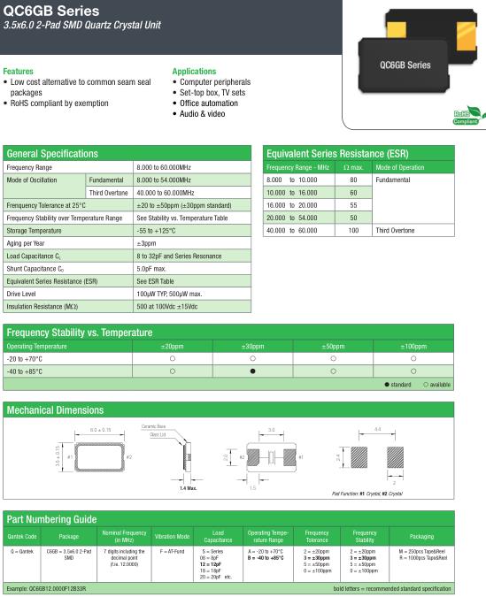 General Specifications-QANTEK晶振 | QC6GB晶振 | |