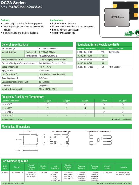 General Specifications-QANTEK晶振 | QC7A晶振 | |
