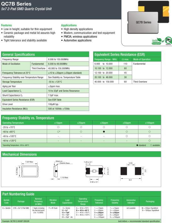 General Specifications-QANTEK晶振 | QC7B晶振 | |