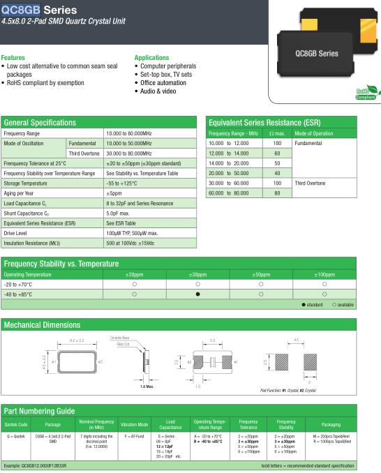 General Specifications-QANTEK晶振 | QC8GB晶振 | |