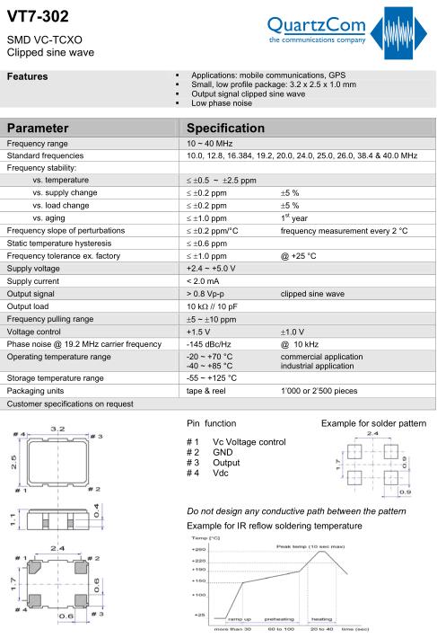 在一個不同擴張系數(shù)電路板(環(huán)氧玻璃)上焊接陶瓷封裝石英晶振時,在溫度長時間重復變化時可能導致端子焊接部分發(fā)生斷裂,請事先檢查焊接特性。QuartzCom晶振,VT7-302晶振,VC-TCXO晶振.