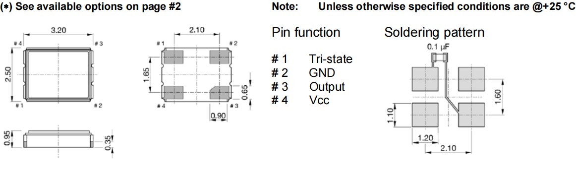 XO32P-H33-NN1u25-100.000MHz,3225mm,QuartzCom高可靠晶振,XO32P,低抖動(dòng)晶振,尺寸圖