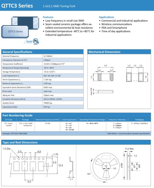 Quarztechnik晶振,QTTC3晶振,QTTC332.76812B2R晶振,32.768K時(shí)鐘晶體具有小型,薄型,輕型的貼片晶振表面音叉型晶體振蕩器,產(chǎn)品具有優(yōu)良的耐熱性,耐環(huán)境特性,可發(fā)揮晶振優(yōu)良的電氣特性,符合RoHS規(guī)定,滿足無(wú)鉛焊接的高溫回流溫度曲線要求,金屬外殼的封裝使得產(chǎn)品在封裝時(shí)能發(fā)揮比陶瓷振蕩器外殼更好的耐沖擊性.