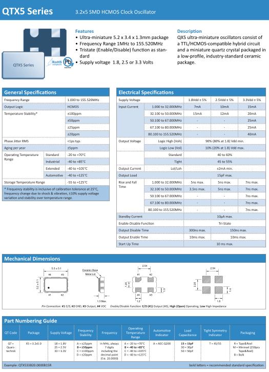 Quarztechnik晶振,QTX5晶振,QTX533B20.0000B15R晶振,5032mm體積的石英晶體振蕩器,有源晶振,該產品可驅動2.5V的溫補晶振,壓控晶振,VC-TCXO晶體振蕩器產品,電源電壓的低電耗型,編帶包裝方式,可對應自動高速貼片機自動焊接,及IR回流焊接(無鉛對應),為無鉛產品,超小型,質地輕.產品被廣泛應用到集成電路,程控交換系統,無線發射基站.