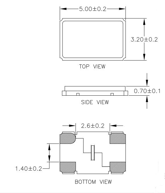6G車載導航晶振,495-25.78125-2JB4I,Renesas石英晶體諧振器,尺寸圖