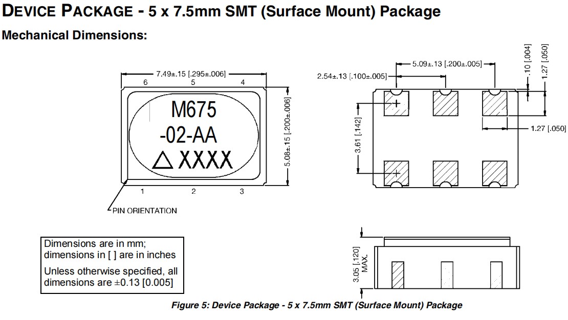 小型5 x 7.5mm SMT(表面安裝)封裝