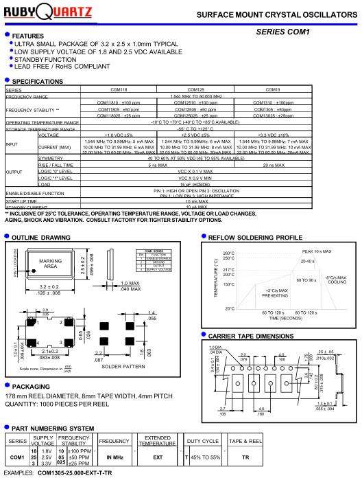 COM118025 : ±25 ppm | COM125025 : ±25 ppm | COM13025 : ±25ppm | ||