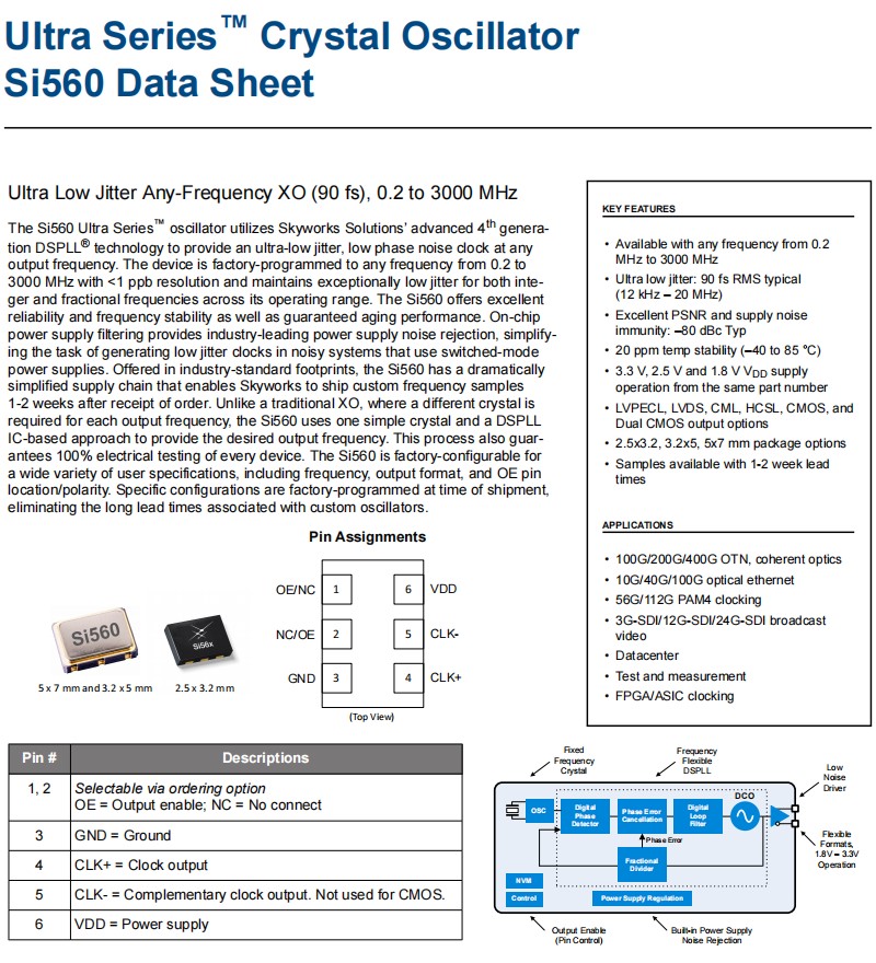 560BAA100M000CCG | Skyworks晶振 | Si560 | 100 MHz | LVDS | 1.8V, 2.5V, 3.3V |