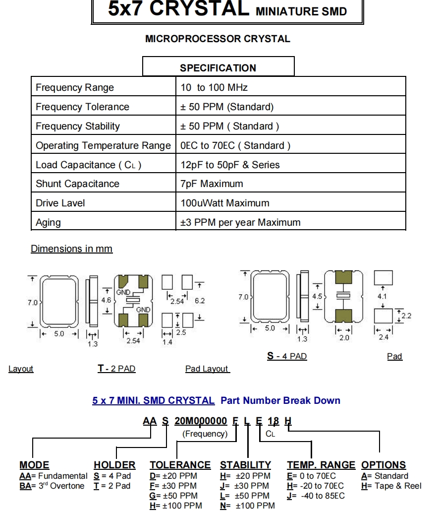 Load Capacitance ( CL ) | 12pF to 50pF & Series | |||||||||