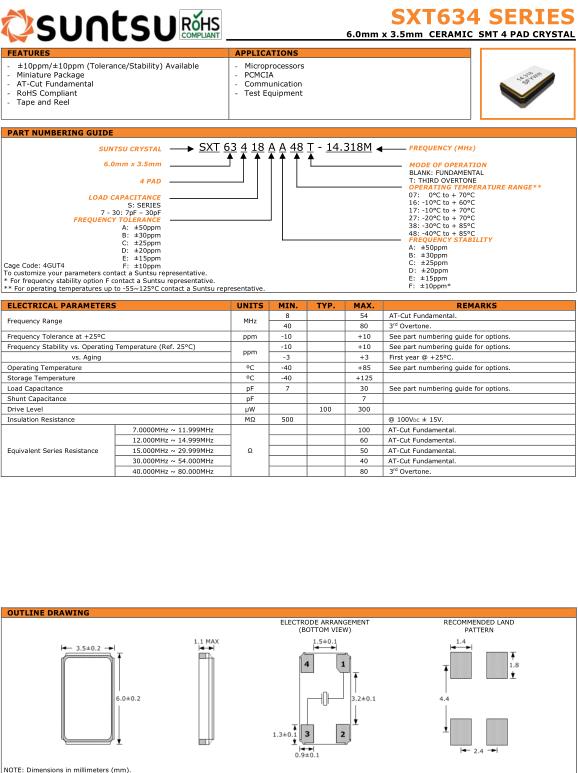 松圖晶振,SXT634晶振,SXT63418AA48T-12.000M晶振,貼片晶振本身體積小,超薄型石英晶體振蕩器,特別適用于有目前高速發展的高端電子數碼產品,因為晶振本身小型化需求的市場領域,小型,薄型是對應陶瓷振蕩器(偏差大)和普通的石英晶體振蕩器(偏差小)的中間領域的一種性價比較出色的產品.產品廣泛用于筆記本電腦,無線電話,衛星導航SSD,USB,Blu-ray等用途,符合無鉛焊接的高溫回流焊曲線特性.