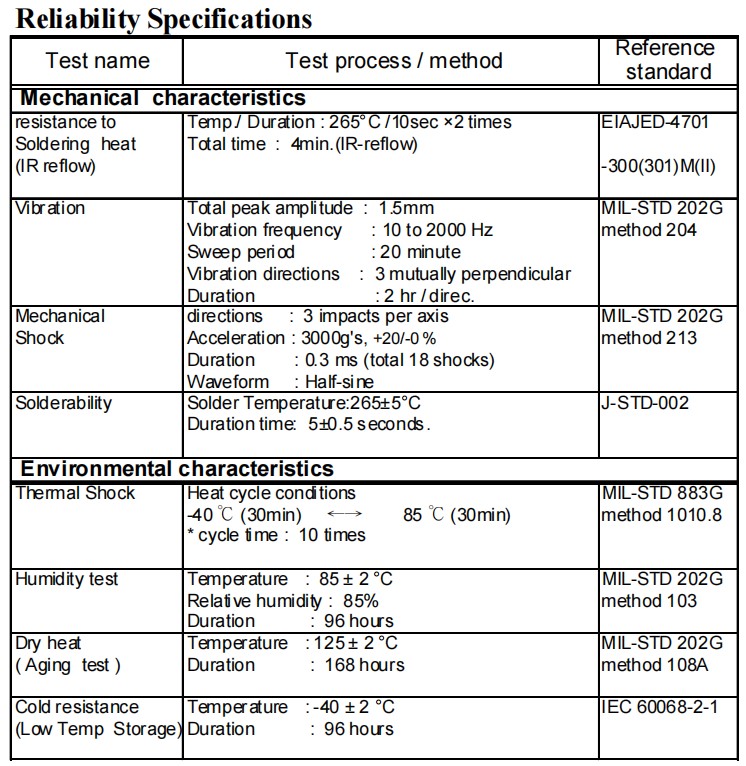 Motional Capacitance (C1) | 5.0 fF min ; 7.0 fF typ ; 9.0 fF max. |