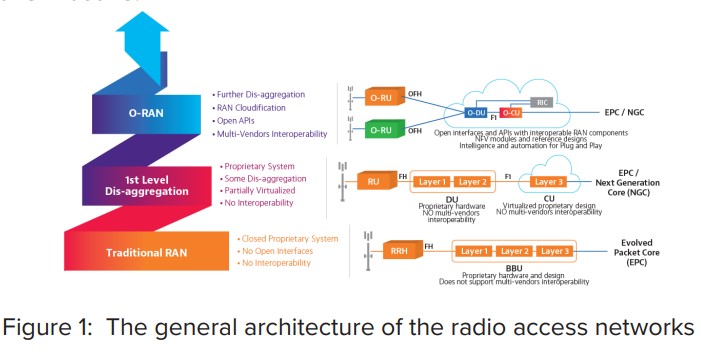 在O-RAN中,遠程無線電單元(RRU)充當網(wǎng)絡(luò)的接入點。用戶將連接 到了RRU,數(shù)據(jù)將到達前端傳輸交換機,然后繼續(xù)傳輸?shù)竭吘壏?wù)器或分布式服務(wù)器 單位(DU)。然后,DU將信息傳遞給中央單元。這些階段之間的同步是 對4G至關(guān)重要,但對新的5G應用更為重要。這是使用同步完成的 由稱為IEEE 1588的精確時鐘同步協(xié)議管理的方法。
