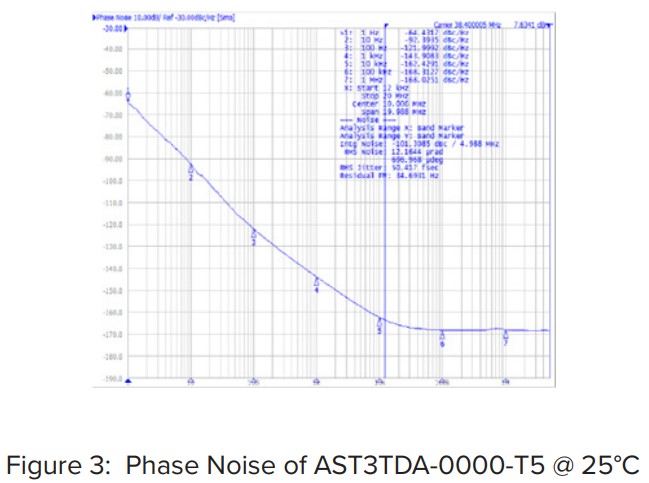 圖3:25°C時AST3TDA-0000-T5的相位噪聲