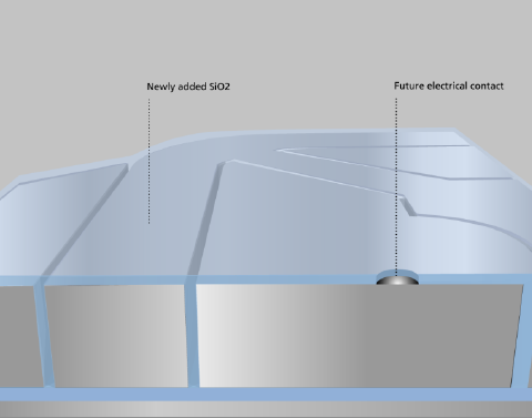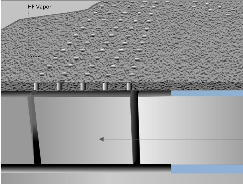 用氫氟酸蒸汽去除共振結構周圍的氧化物.該步驟限定了諧振器工作的封閉真空腔的容積.諧振器和電極固定在襯底上時,氧化物不會被去除.